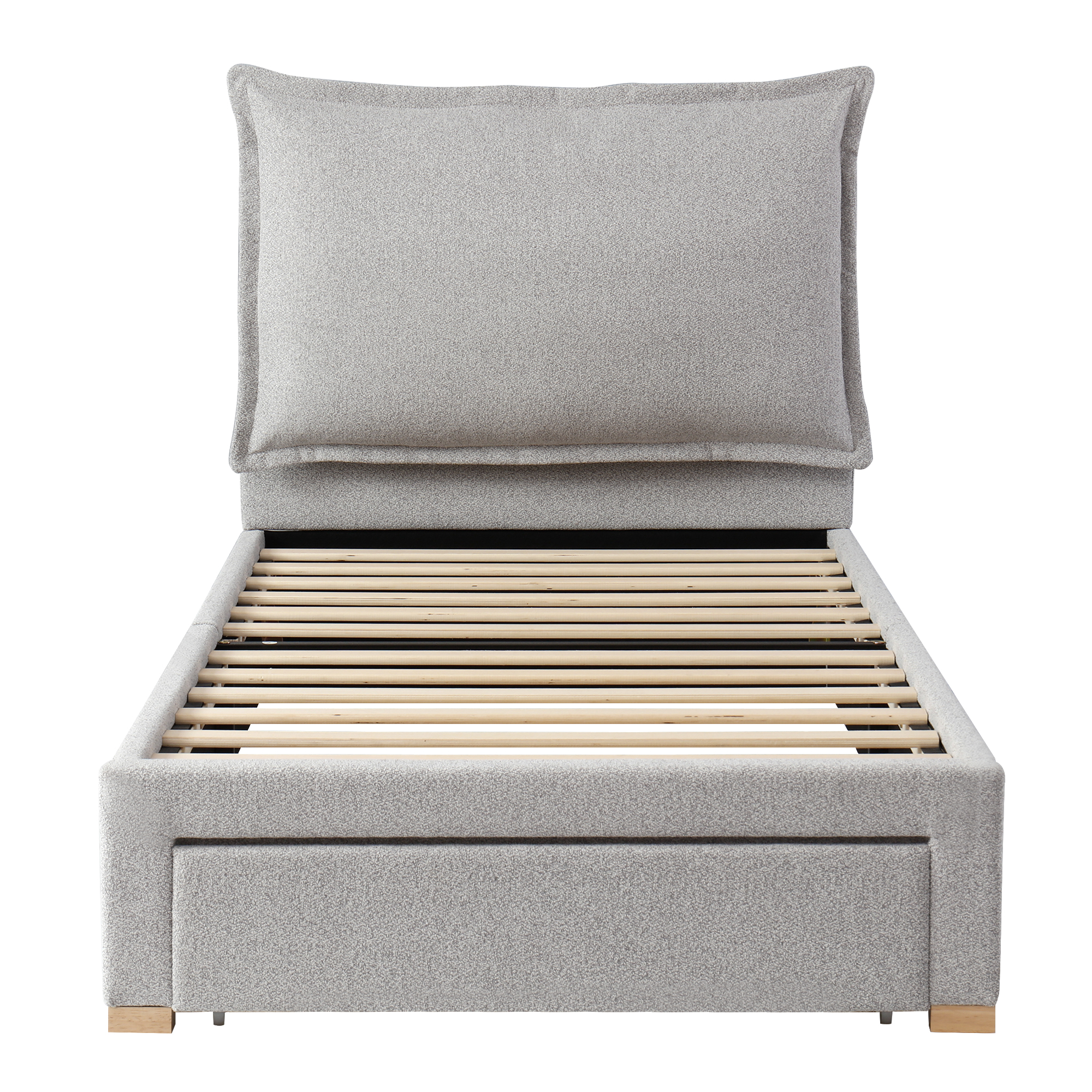 Verhoiltu sänky 90 x 200 cm, yhden hengen sänky sängynpäädyllä ja säilytystilalla, lastensänky, chenille, harmaa