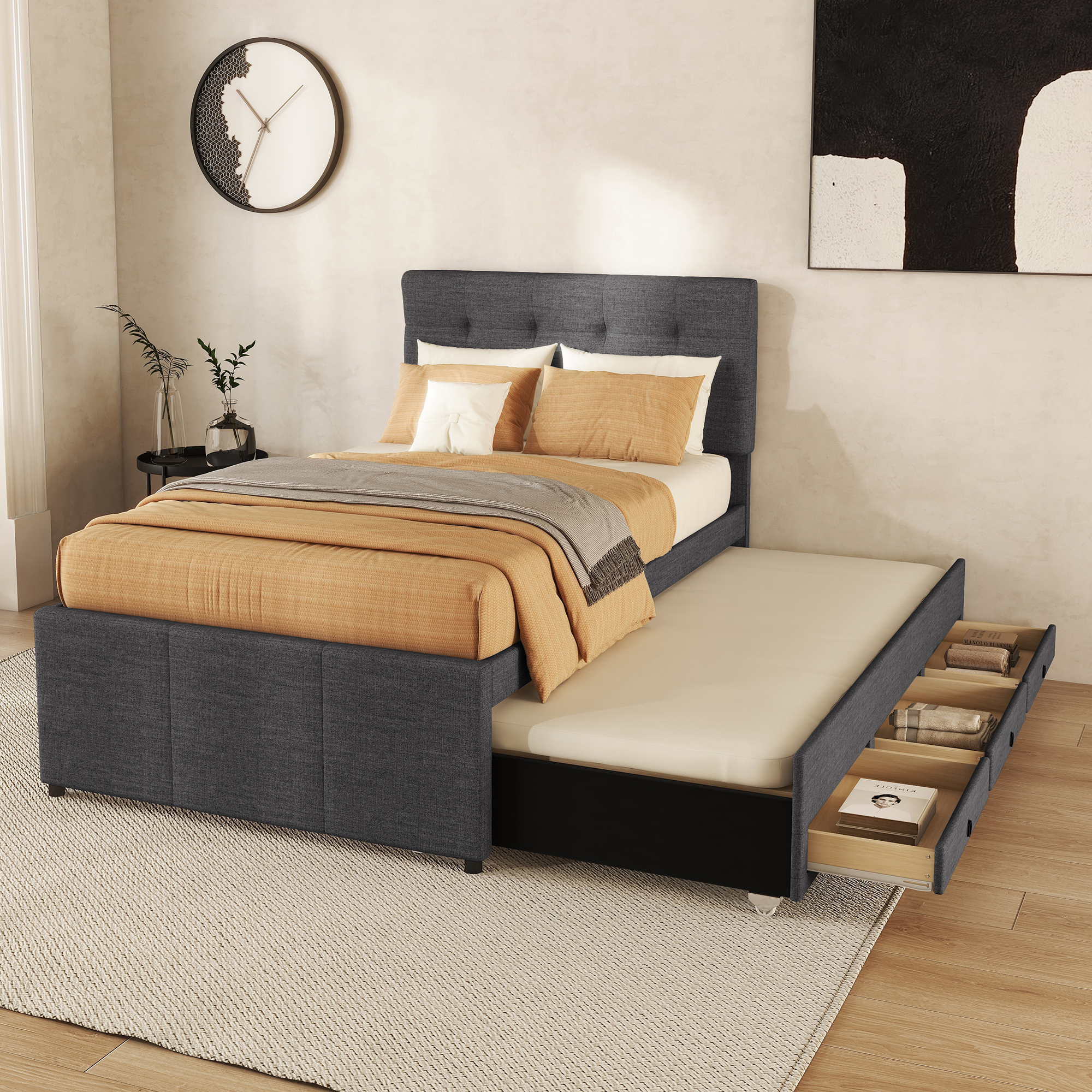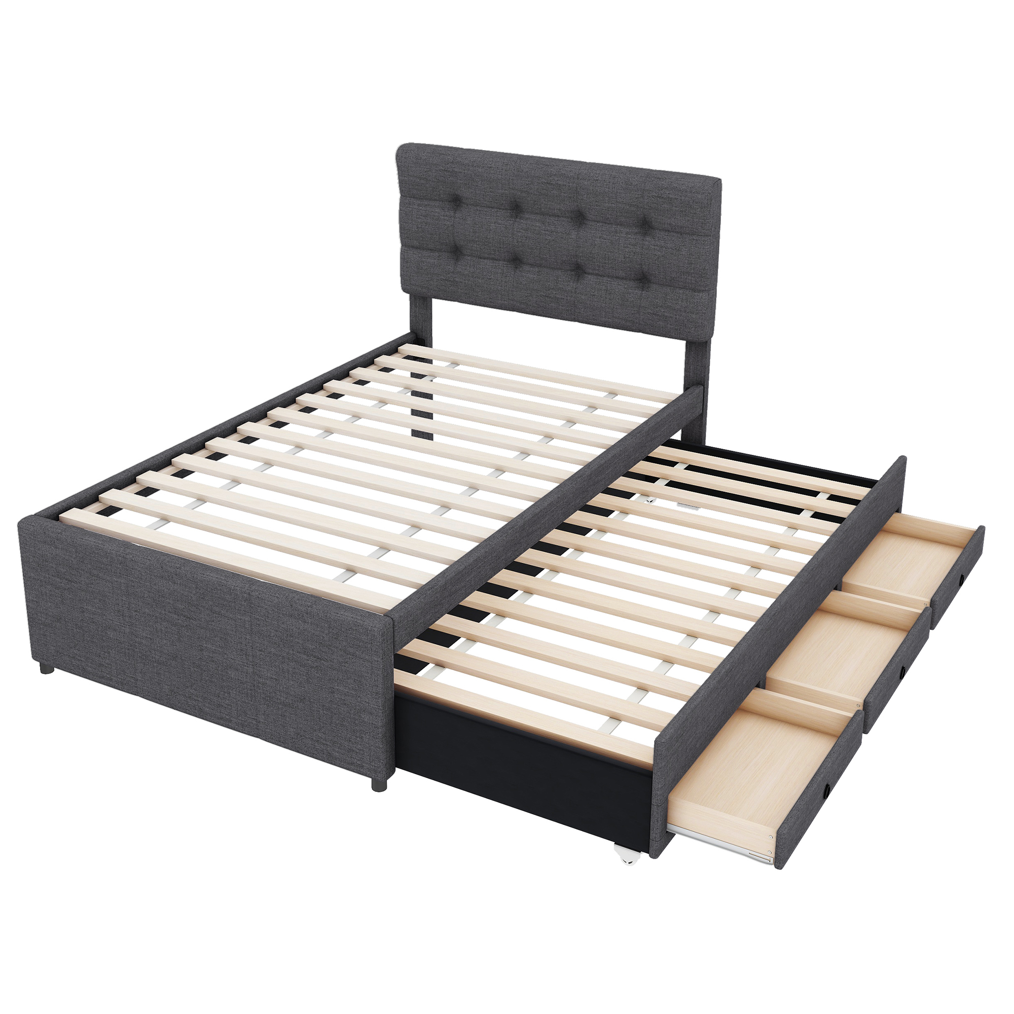 Verhoiltu sänky 90x200cm, Levitettävä lisäsänky 90x190cm, 3 laatikkoa, Harmaa