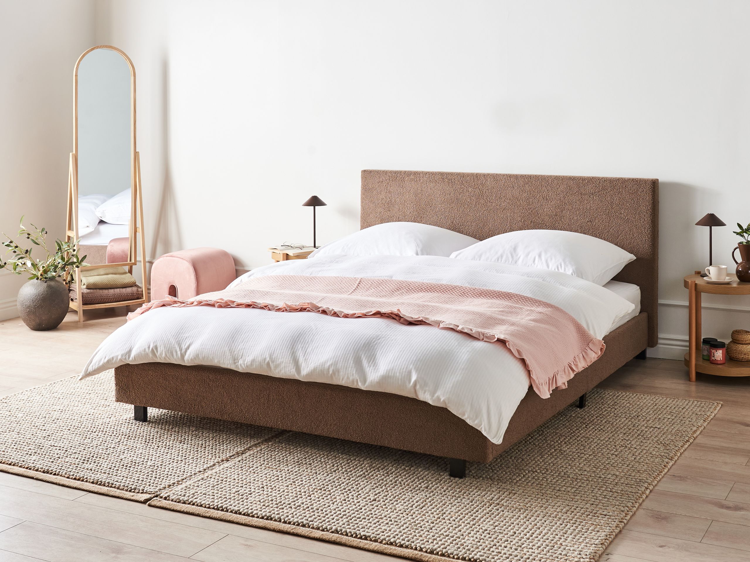 Tyylikäs verhoiltu vesisänky. Nauti täydellisistä yöunista tässä minimalistisessa vesisängyssä, joka sopii erinomaisesti erilaisiin sisustustyyleihin, moderneista ja perinteisistä skandinaavisiin. Se rikastuttaa makuuhuonetta hienovaraisella muotoilullaan, jossa yhdistyvät silmää miellyttävä rakenne ja äärimmäinen mukavuus. Bukleeverhoilu on kestävää mutta pehmeän tuntuista, ja leveää sängynpäätyä täydentävät pienet mustat rautajalat, jotka varmistavat tyylikkään ja selkeän ilmeen.