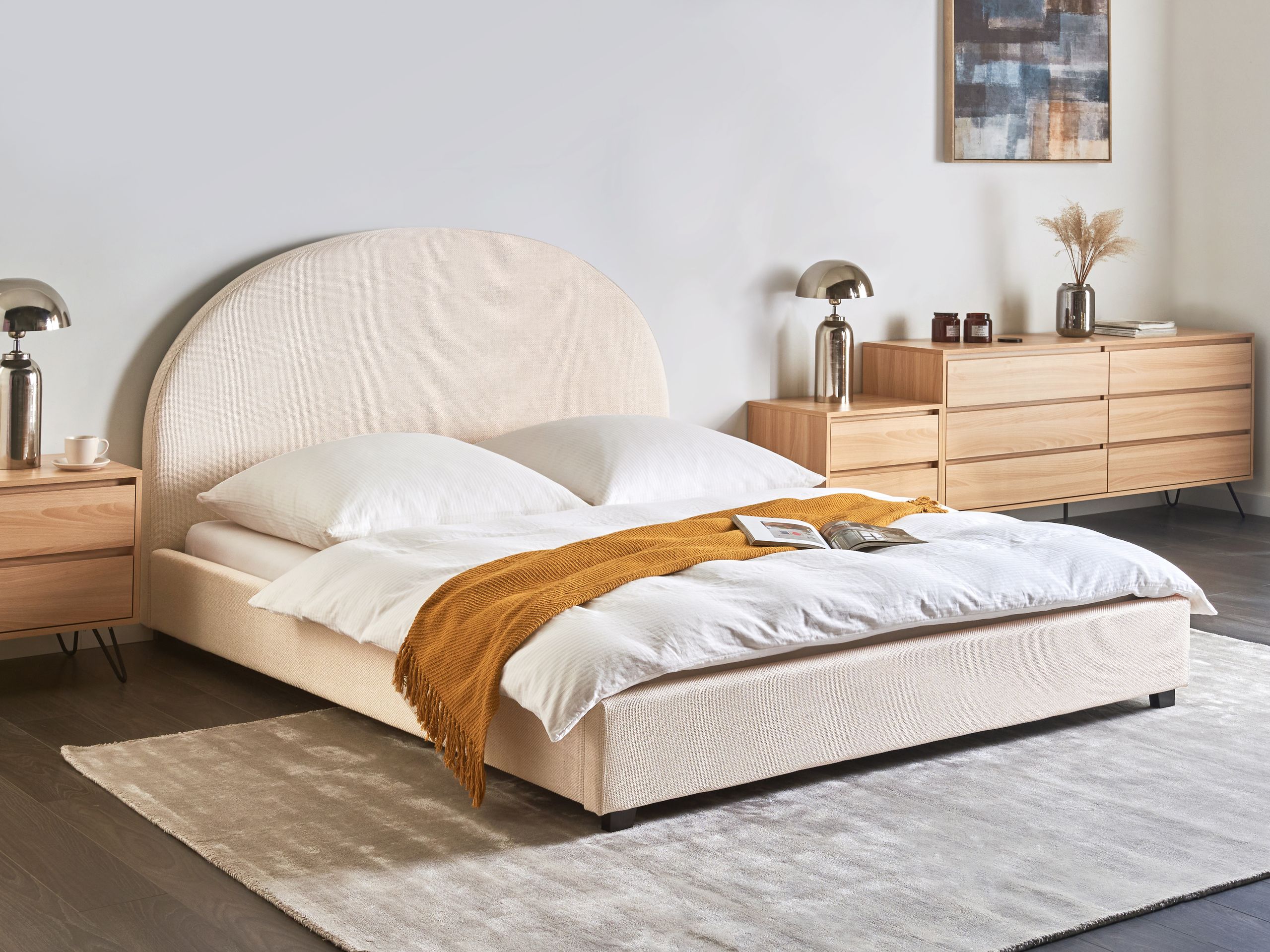 Minimalistinen vesisänky kaarevalla sängynpäädyllä. Kaarevien muotojensa ja täyteläisten tekstuureidensa ansiosta tämä vesisänky tuo ripauksen retrotyyliä mihin tahansa makuuhuoneeseen. Vaaleanbeige polyesteriverhoilu on miellyttävän tuntuinen, kestävä sekä helppohoitoinen. Sänky on loistava valinta lemmikinomistajille, sillä verhoilu on helppo puhdistaa lemmikin karvoista. Kaareva sängynpääty luo makuuhuoneeseen kotoisan ja kutsuvan tunnelman.