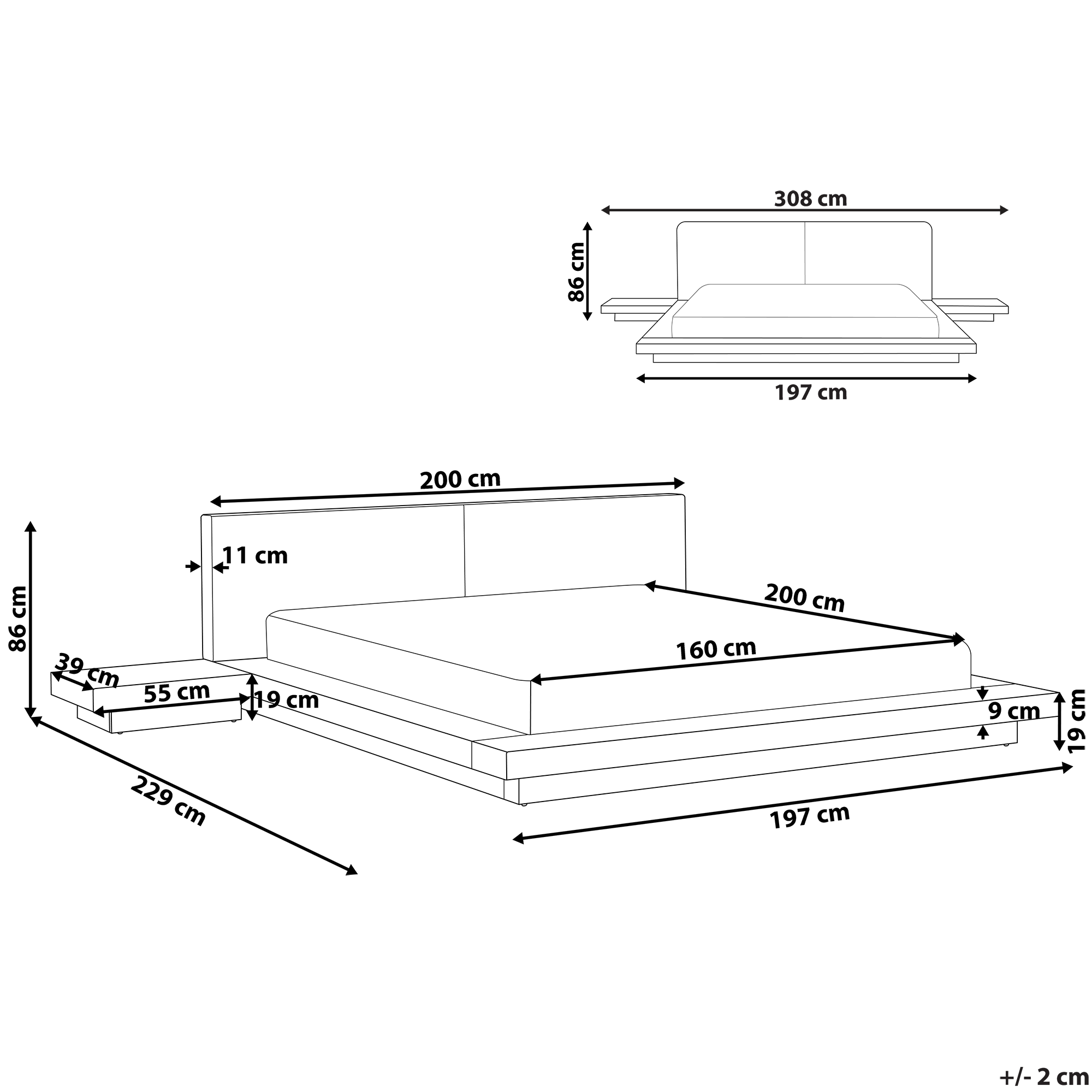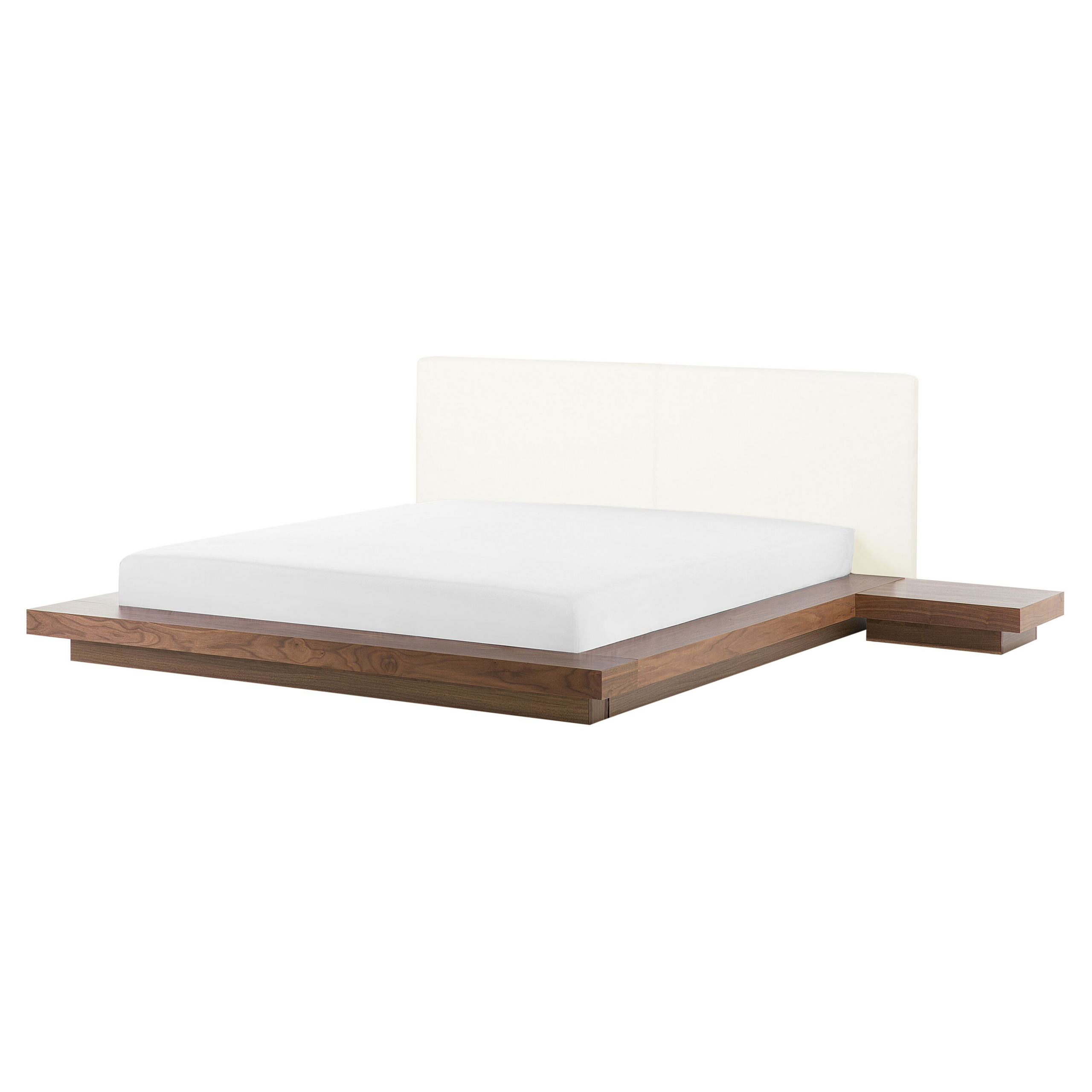 Matala vesisänky yöpöydillä. Aasialaisen muotoilun innoittama, tyylikäs ja minimalistinen vesisänky muuntaa minkä tahansa makuuhuoneen hetkessä. Korkealaatuisesta ruskeasta MDF-levystä valmistettu runko yhdistyy kauniisti sängynpäätyyn, joka on verhoiltu valkoisella keinonahalla. Sängyn molemmille puolille sijoitetut leveät yöpöydät tarjoavat paikan herätyskellolle, valaisimelle ja kirjalle. Elegantin muotonsa ja värimaailmansa ansiosta tämä matala parisänky sopii erinomaisesti etenkin moderneihin sisustuksiin.