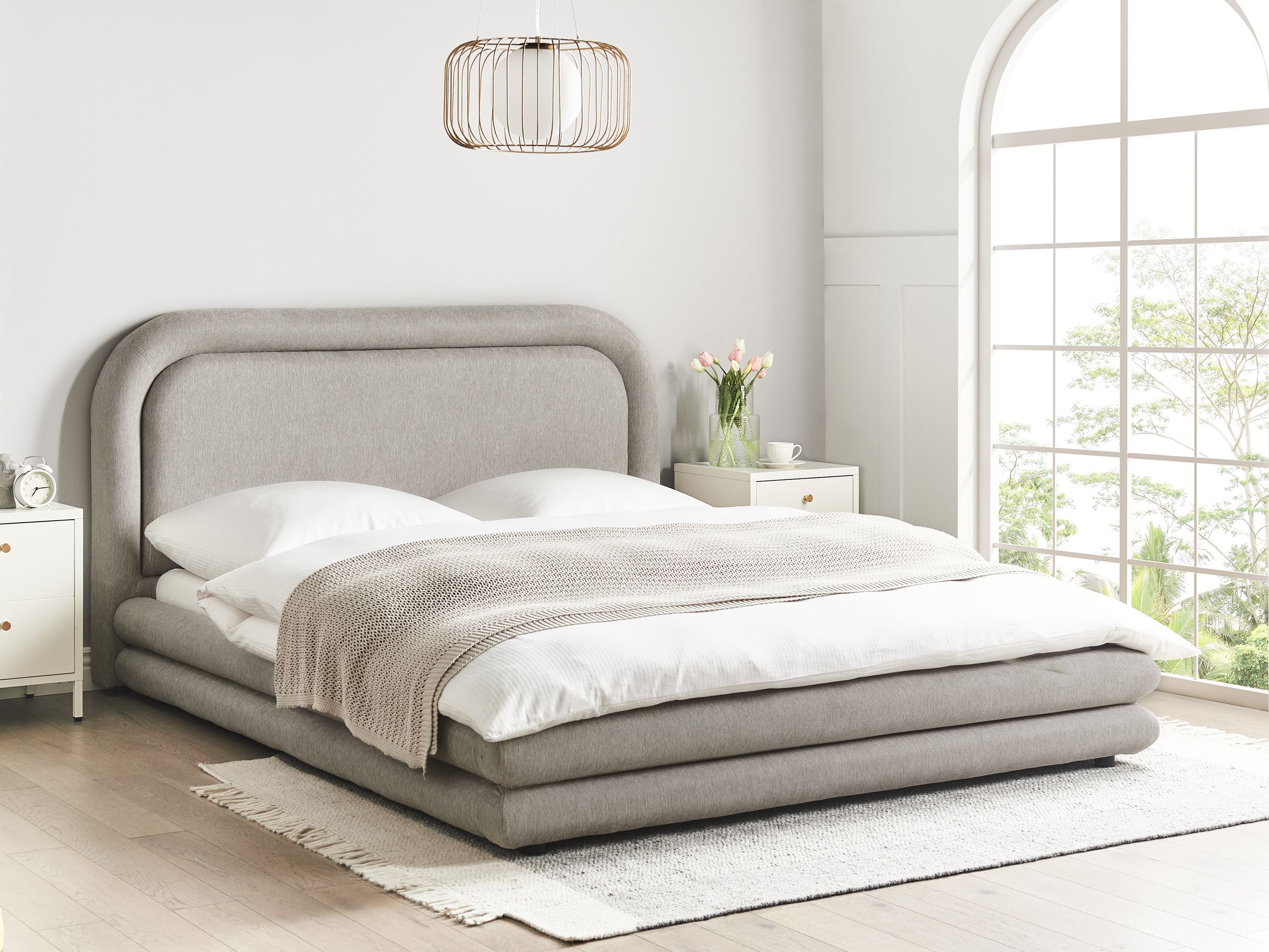 Moderni verhoiltu vesisänky mukavalla päädyllä. Nuku tyylillä ja mukavasti tällä tyylikkäällä vesisängyllä, joka on suunniteltu täydentämään monia makuuhuoneen sisustuksia. Vesipatja mukautuu täydellisesti vartalon muotoihin poikkeuksellisen rentoutumisen takaamiseksi, ja laadukas, pehmeän tuntuinen keinopellavaverhoilu tuo vesisänkyyn ripauksen eleganssia sekä kodikkuutta. Puhtaiden linjojen ja ajattoman viehättävyyden ansiosta se tarjoaa täydellisen yhdistelmän toiminnallisuutta ja hienostunutta estetiikkaa.