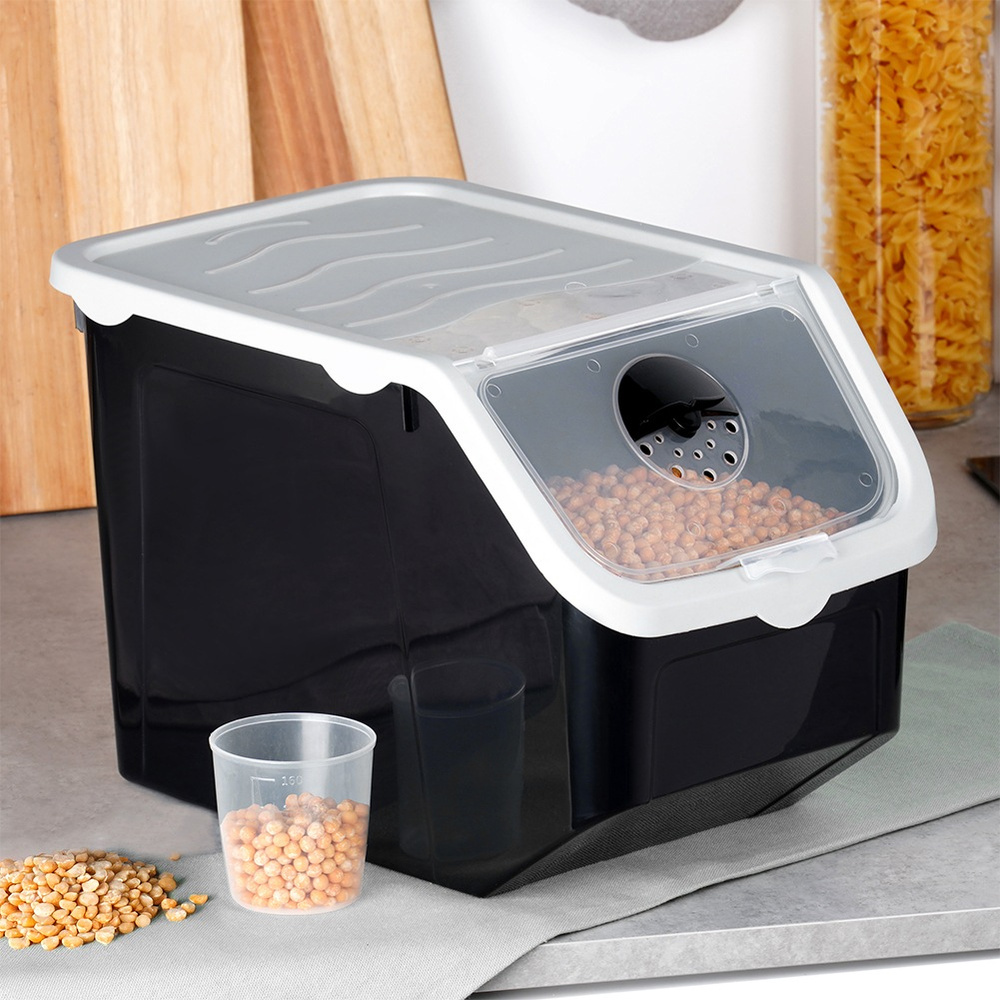 Käytännöllinen säilytysastia - Käytännöllinen astia hedelmien ja vihannesten säilytykseen. Täydellinen sipulille, perunoille, valkosipulille, mutta myös lemmikkien ruoalle tai jauheelle. Mukana mittakuppi. Astian mitat ovat 33 x 23,5 x 23,5 cm ja tilavuus 12 l.