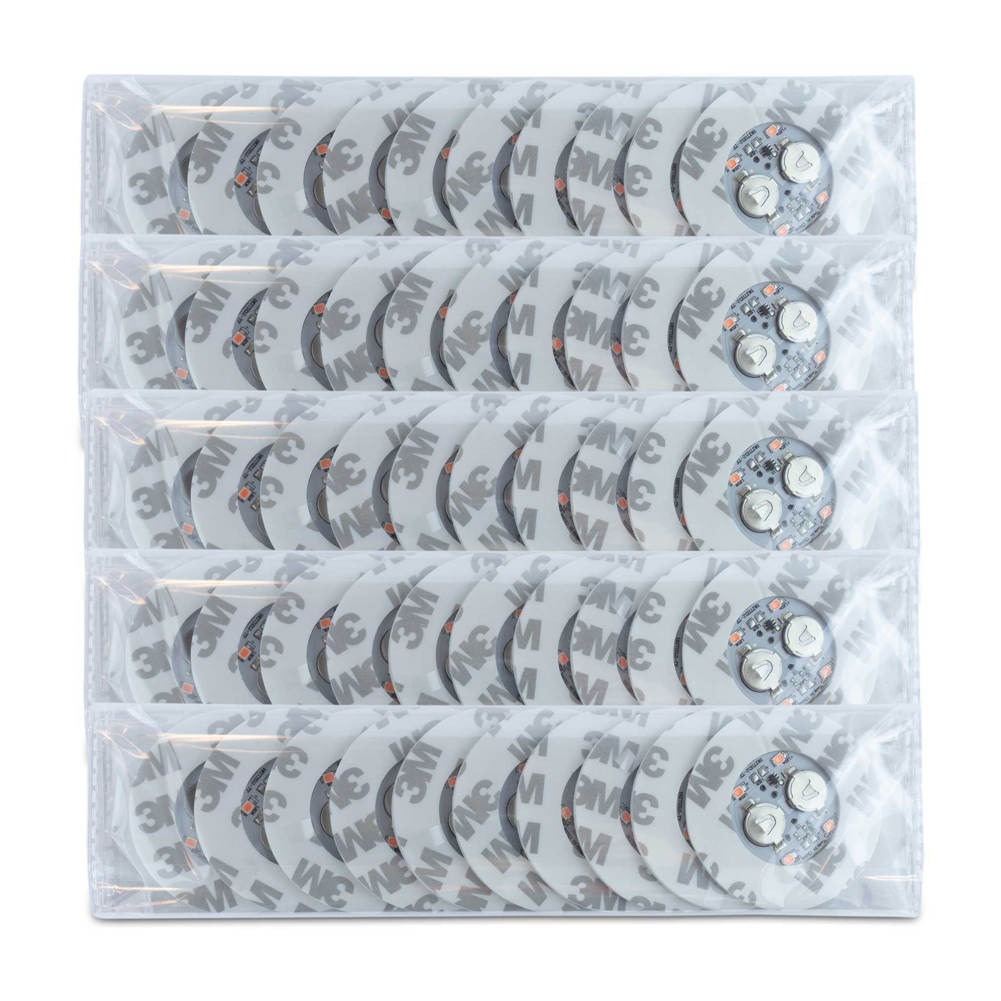 Viking Discs frisbeegolfkiekon LED-valoilla pidennät kauden pitkälle syksyyn. Pakkauksessa on 50 LED-tarraa, jotka voit kiinnittää suoraan kiekon pohjaan. 50kpl settejä on saatavilla punaisilla, sinisillä, vihreillä, pinkeillä tai valkoisilla LEDeillä. LEDissä valmiina 3M-tarra, joten omia teippikiinnityksiä ei tarvita. Pyöreä muoto pitää myös huolen, että LED-tarra vaikuttaa mahdollisimman vähän kiekon lentorataan. Yhdessä tarrassa neljä pientä LED-valoa. LEDin voi sammuttaa ja kytkeä uudelleen päälle sekä siinä on kolme moodia: nopea vilkunta, hitaampi vilkunta ja jatkuva. Kiinnitä LED-tarra kuivaan kiekkoon sisätiloissa varmistaaksesi parhaan pidon.