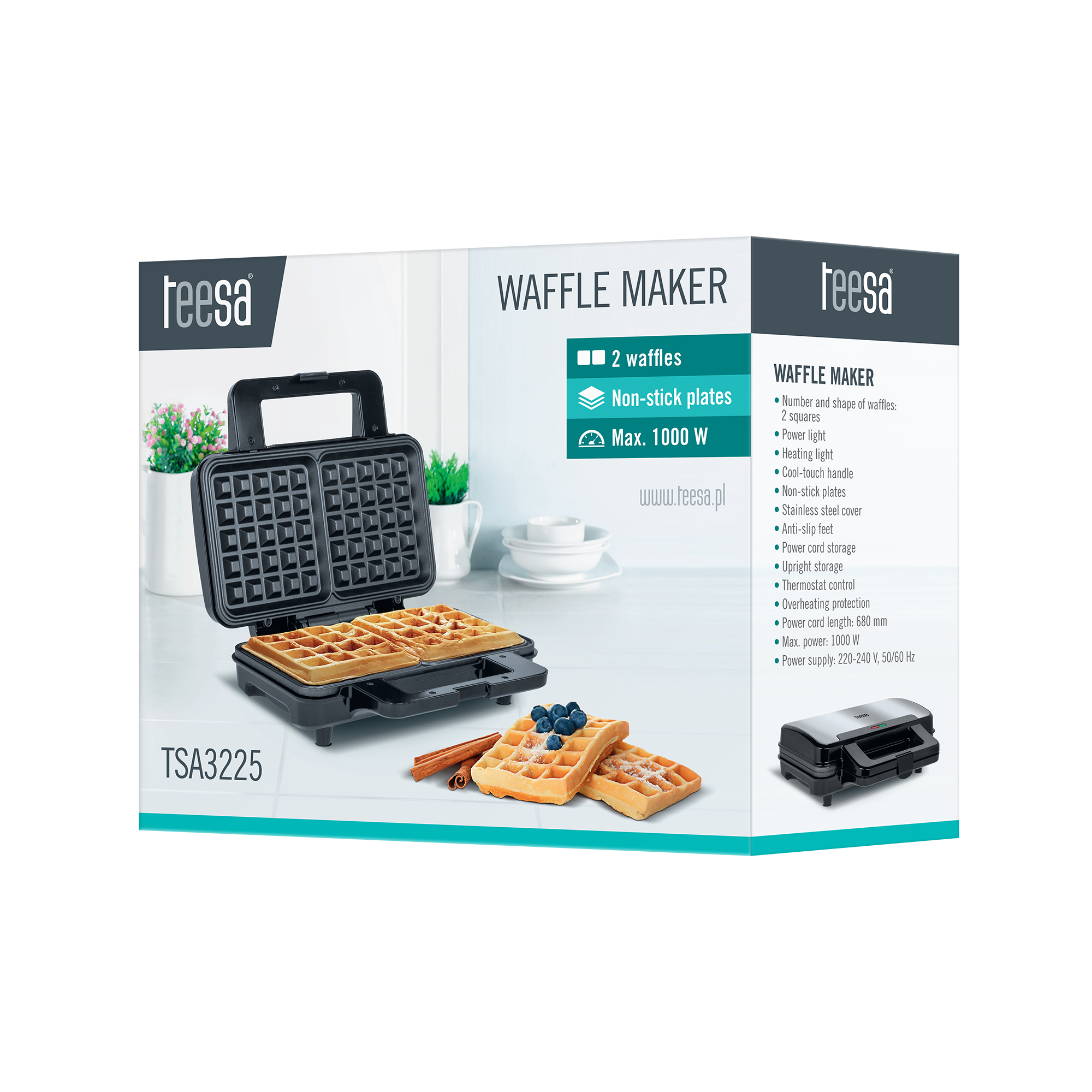 Vohvelirauta 2 vohvelineliötä 1000W Teesa tehokas tarttumaton pinnoite