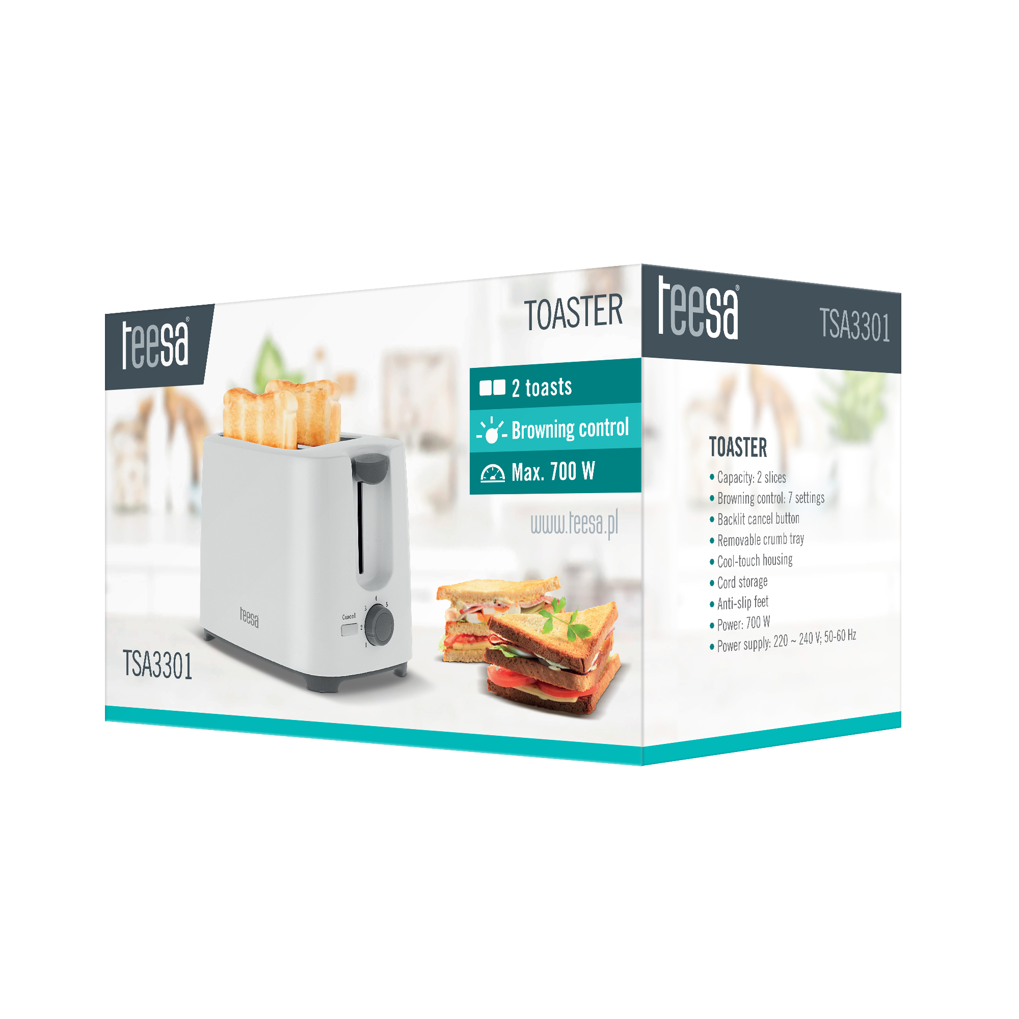 Haluatko valmistaa herkullisen aamiaisen koko perheelle? Teesa-leivänpaahtimella se ei ole ongelma! 700 W:n laitteen avulla voit valmistaa kaksi paahtoleipäviipaletta samanaikaisesti, joten voit nopeasti ja helposti valmistaa aterian kaikille!