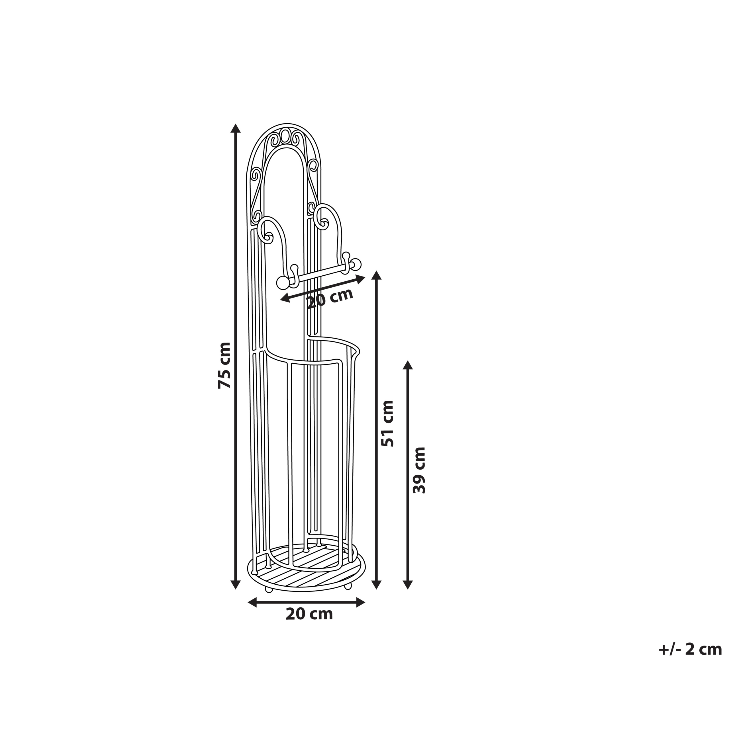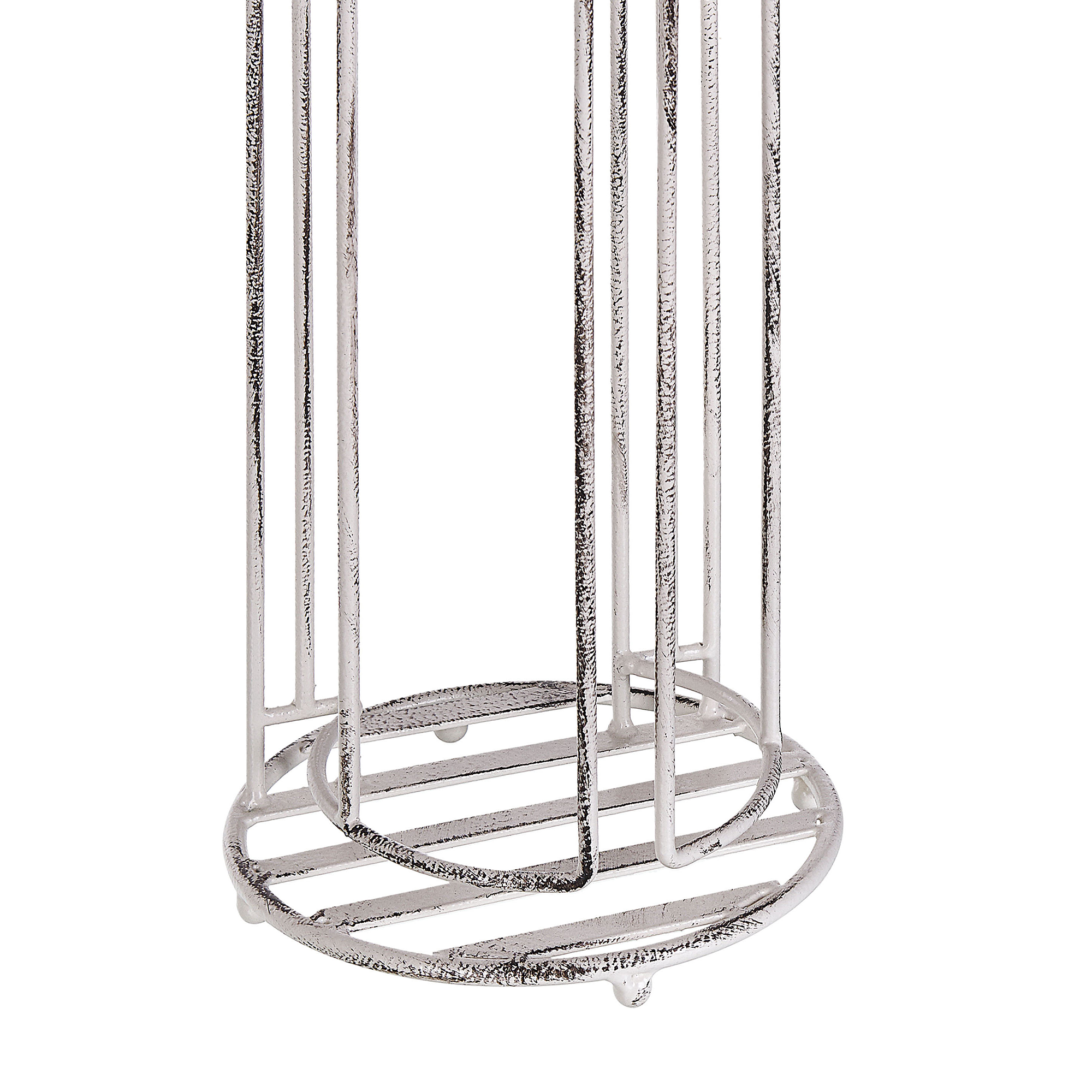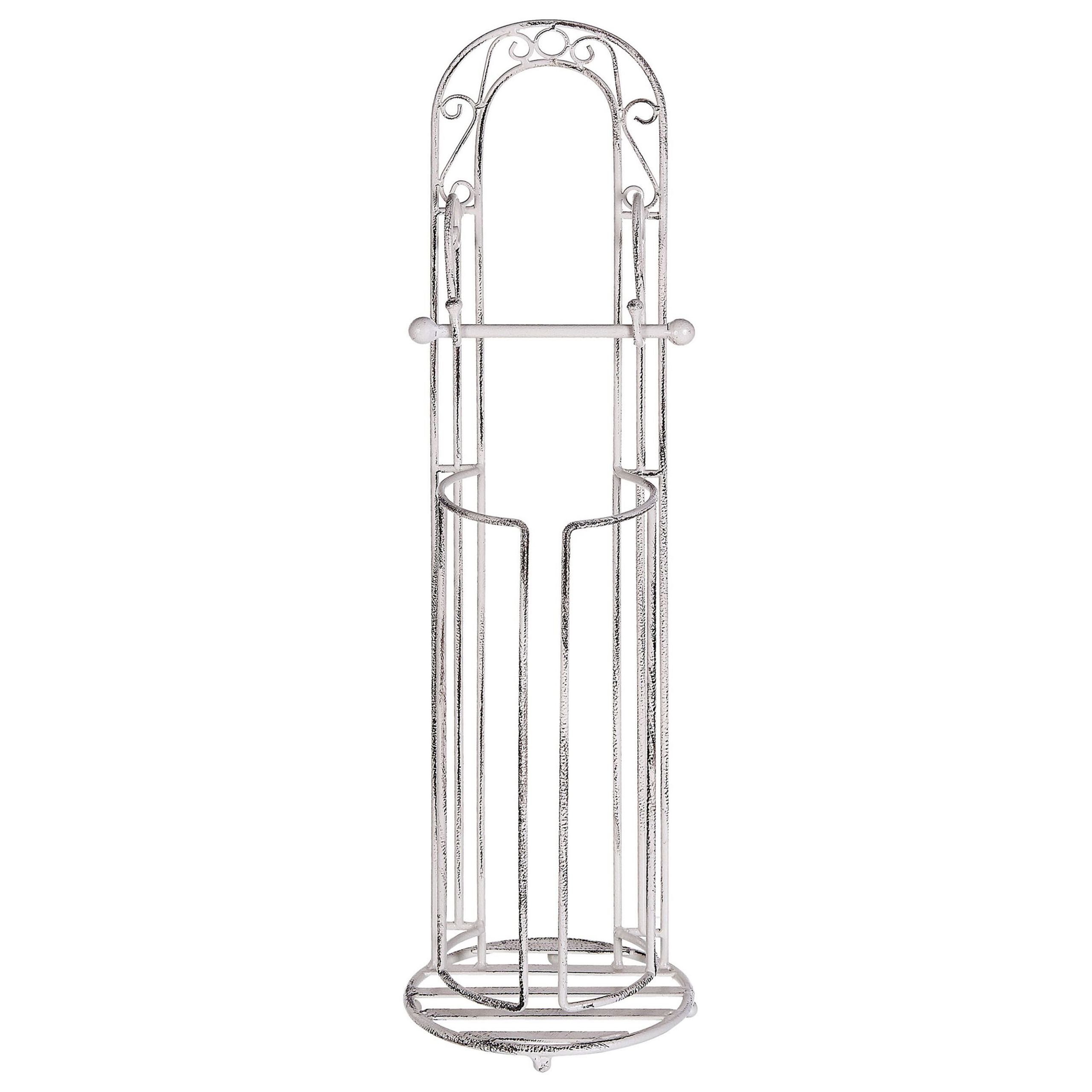 Haalistuneen värinen vessapaperiteline. Raudasta valmistettu WC-paperiteline on käytännöllinen sekä koristeellinen lisä kylpyhuoneeseen. Sen koristeellinen runko haalistuneen valkoisessa värissä korostaa telineen vintage-tyyliä. Telineessä on tanko yhdelle rullalle ja säilytystilaa ylimääräisille rullille. Neutraalin ilmeensä ansiosta se sopii monenlaisiin kylpyhuoneisiin.