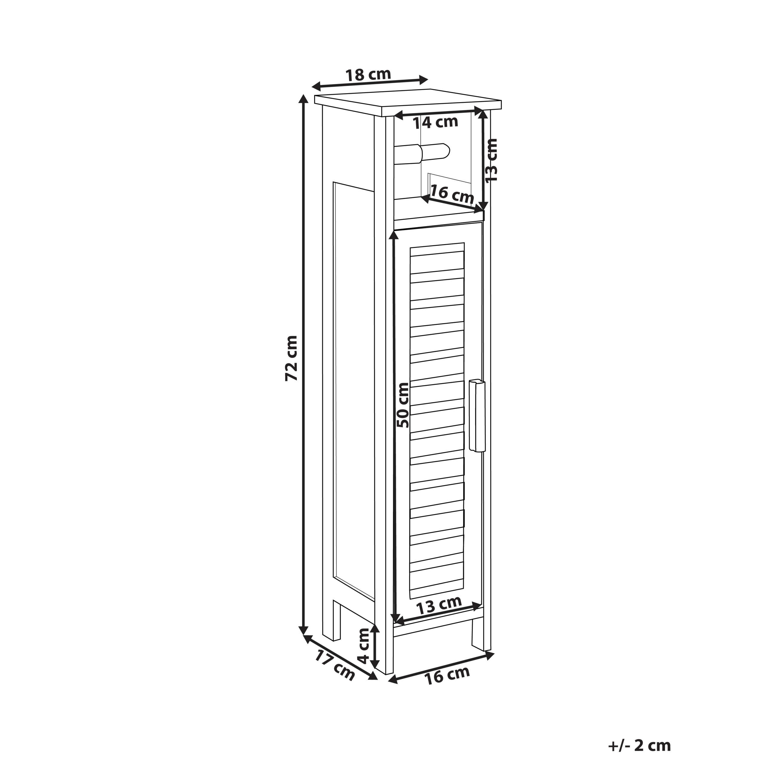 Kapea kylpyhuoneen kaappi WC-paperitelineellä. Tämä kapea ja kompakti kaappi tarjoaa käytännöllisen ja tyylikkään säilytysratkaisun niin pieniin kuin suuriinkin kylpyhuoneisiin tai vessoihin. Tukevasta bambusta valmistetussa kaapissa on kaksi säleoven taakse kätkeytyvää hyllyä, jotka tarjoavat runsaasti tilaa vessapaperirullille ja muille pienemmille tarvikkeille. Lämmin luonnollinen väri ja moderni muotoilu tekevät siitä täydellisen lisän monenlaisiin sisustuksiin.