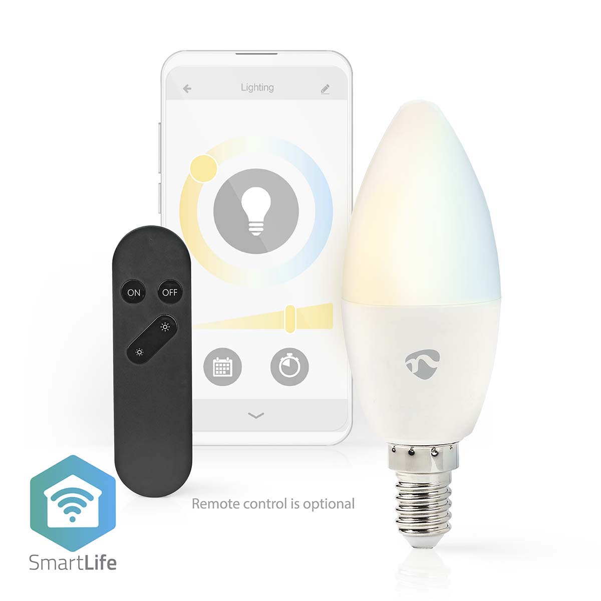 Sytytä kotisi tyylikkäästi tällä Nedisin SmartLife-kynttilänmuotoisella lampulla. Tämä E14-kantaisiin valaisimiin täydellisesti sopivaksi suunniteltu ja kytketty lamppu antaa sinulle täydellisen hallinnan valaistuksestasi. Siinä on säädettävä värilämpötila (2700-6500K). Sen valovirta on 360 lumenia ja virrankulutus on alhainen, vain 4,9 W.