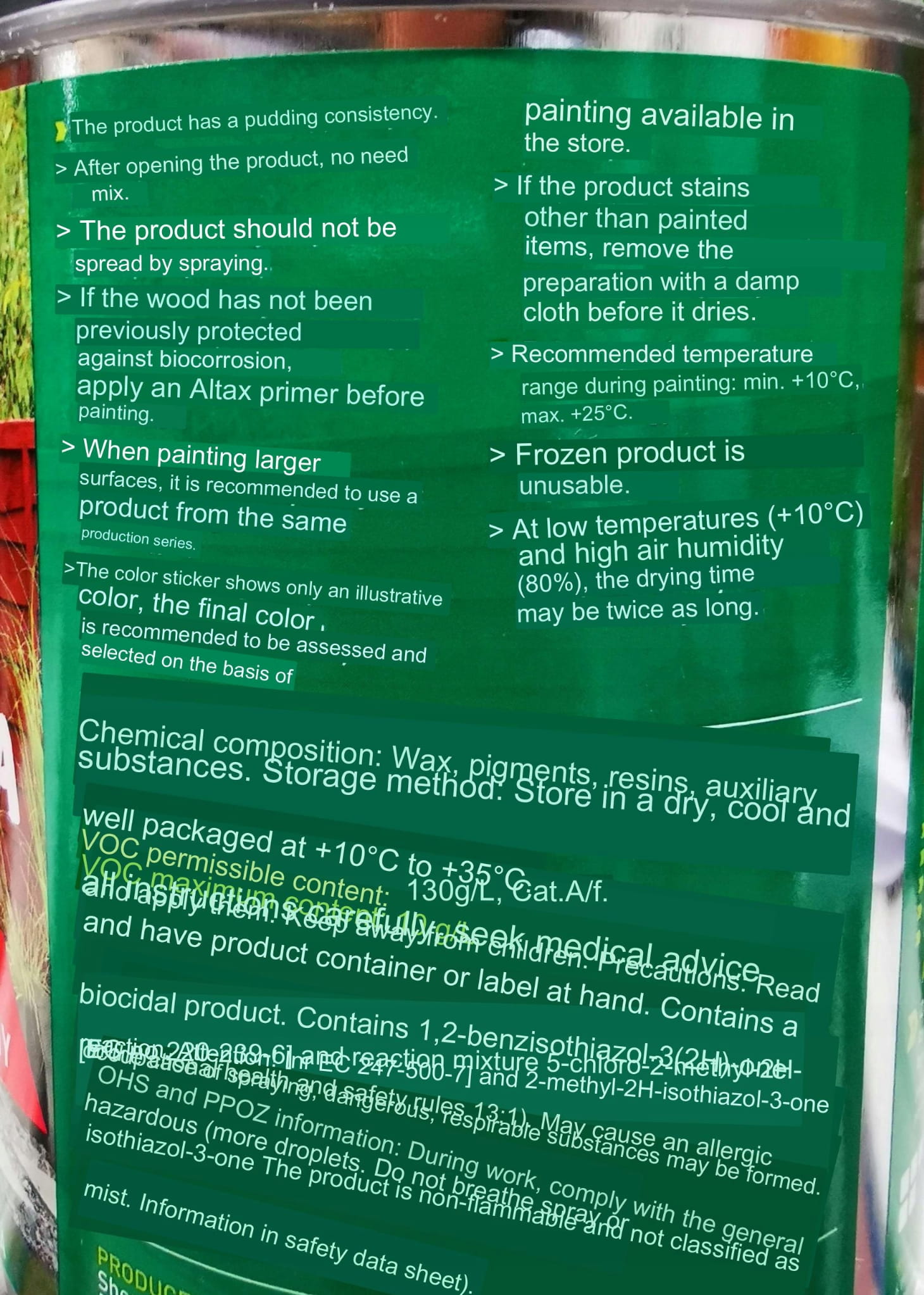 - Nykyaikaiset pigmentit antavat kestävän värin ja suojaavat puuta harmaantumiselta.
