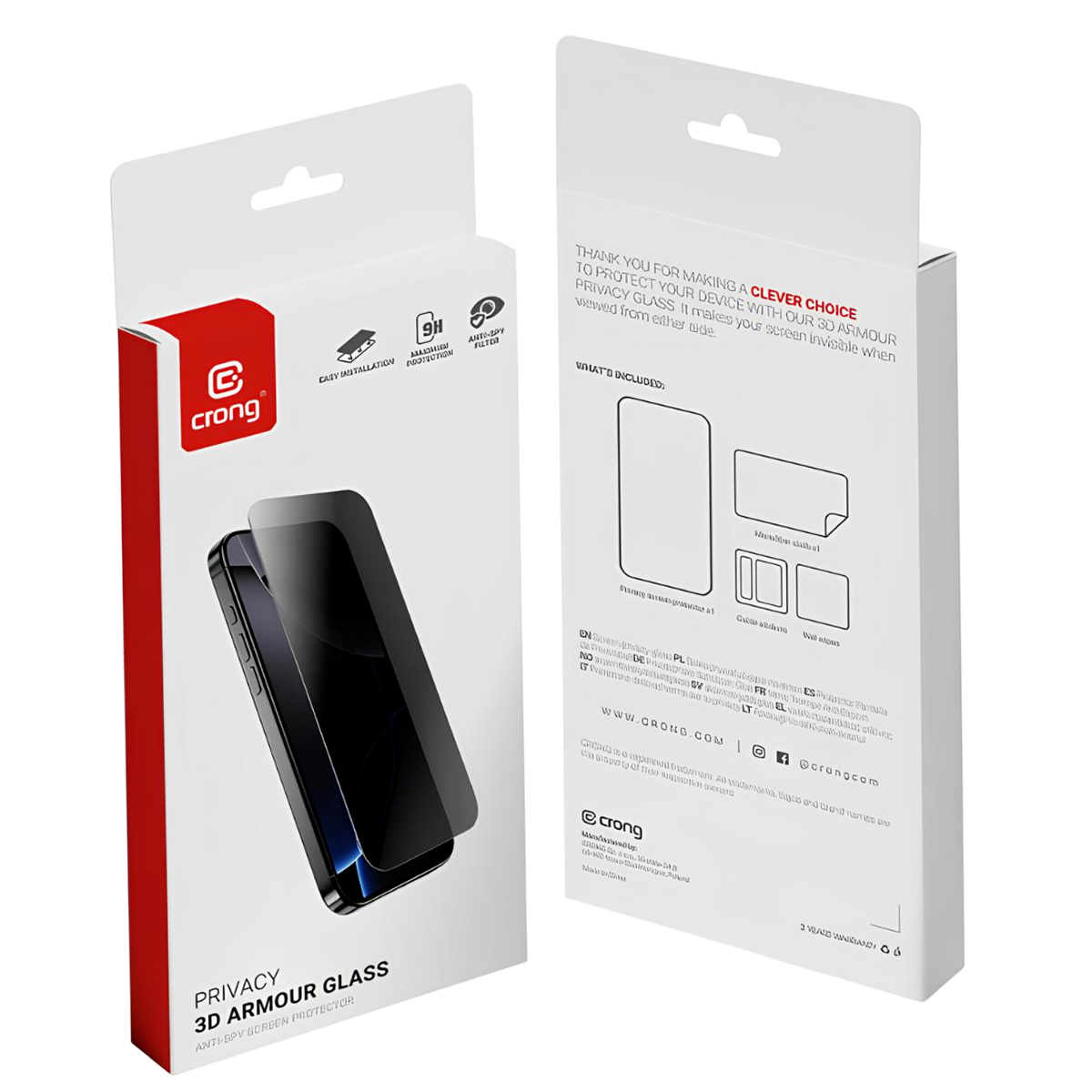 Crong Privacy 3D-karkaistu lasi, jossa on vaakasuora yksityisyyssuodatin, yhteensopiva iPhone 16e, 14, 13 ja 13 Pro. 9H kovuus suojaa tehokkaasti naarmuilta. 3D-käyristymä reunasta reunaan ulottuvaa kattavuutta varten. Säilyttää näytön reagointikyvyn ja suojaa samalla sivukuvilta. Tämä suoja on valmistettu 9H naarmuuntumattomasta karkaistusta lasista. Vaakasuora yksityisyyssuodatin lisää yksityisyyttä. Yhteensopivuus usean mallin kanssa: iPhone 13-16. Kaarevat 3D-reunat suojaavat kaikilta osin. Helppo asentaa ilman kuplia ja erittäin ohut.