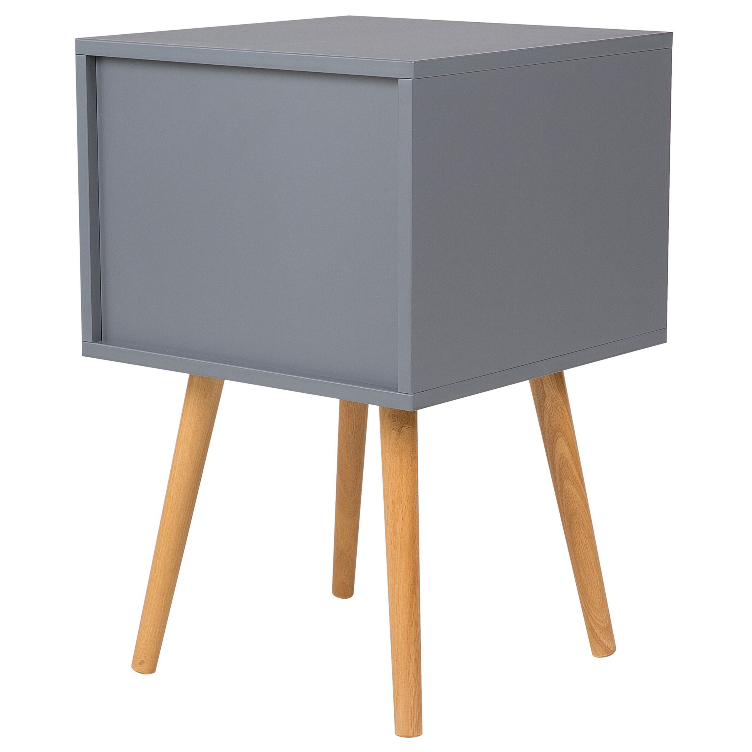 Skandinaavinen sivupöytä. Tuo trendikästä, skandinaavista tyyliä kotiisi tällä kauniilla, modernin minimalistisella yöpöydällä. Harmaa runko on valmistettu helppohoitoisesta MDF-levystä, joka yhdessä vaaleiden bambukahvojen kanssa luo harmonisen ilmeen. Kapeat, hieman vinot jalat on valmistettu kumipuusta, joka takaa vakauden ja korostaa yöpöydän modernia muotoilua. Lisäksi yöpöydässä on kaksi tilavaa laatikkoa, joiden ansiosta voit pitää kaiken tarpeellisen käden ulottuvilla. Monipuolisuutensa ansiosta voit käyttää sitä makuuhuoneen yöpöytänä tai sivupöytänä olohuoneessa tai eteisessä.
