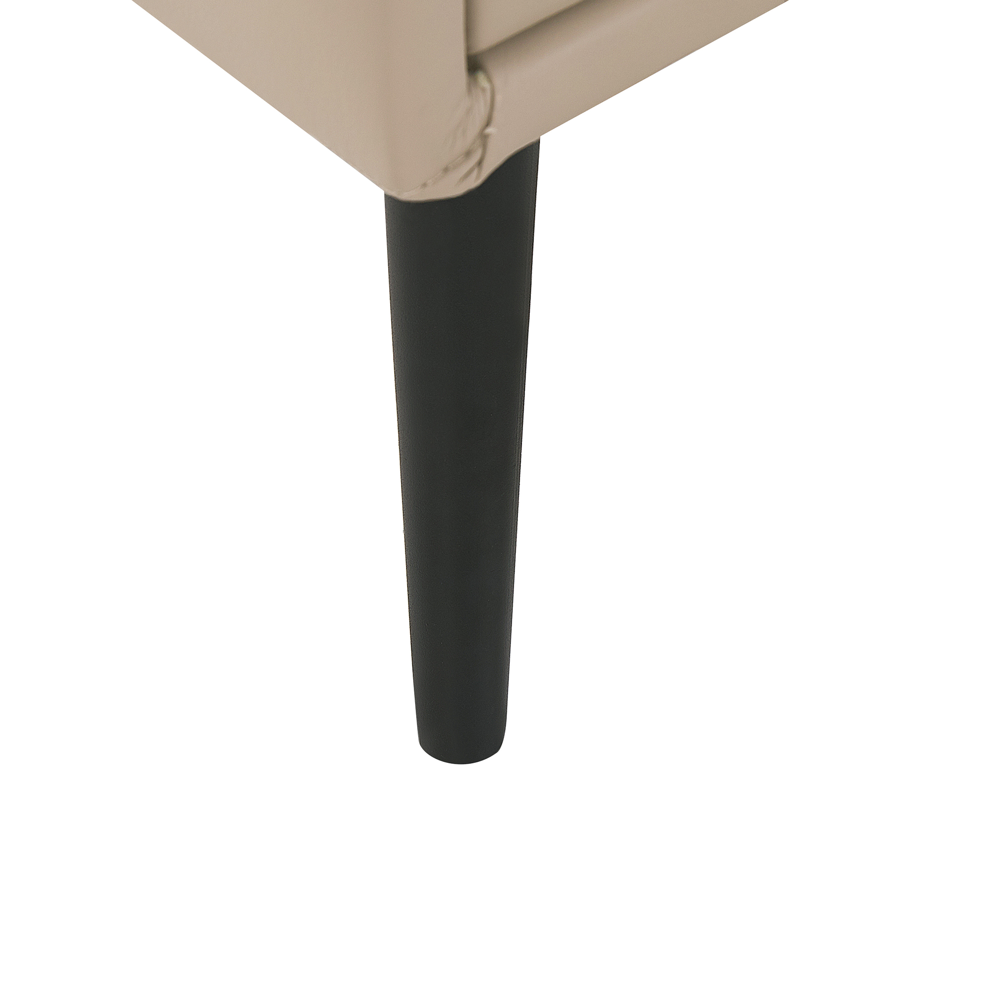 Moderni verhoiltu sivupöytä. Lisää modernia tunnelmaa makuuhuoneeseen tällä yöpöydällä. Se on verhoiltu keinonahalla, mikä tekee pöydästä erittäin kestävän ja vähän ylläpitoa vaativan. Mustat metallijalat täydentävät pöydän beigeä väriä ja takaavat vakauden. Kaksi tilavaa laatikkoa tarjoavat paljon säilytystilaa erilaisille tarpeellisille esineille, ja leveälle pöytälevylle mahtuu niin pöytävalaisin kuin herätyskellokin. Minimalistinen muotoilu saa yöpöydän sopimaan useisiin erilaisiin sisustuksiin.