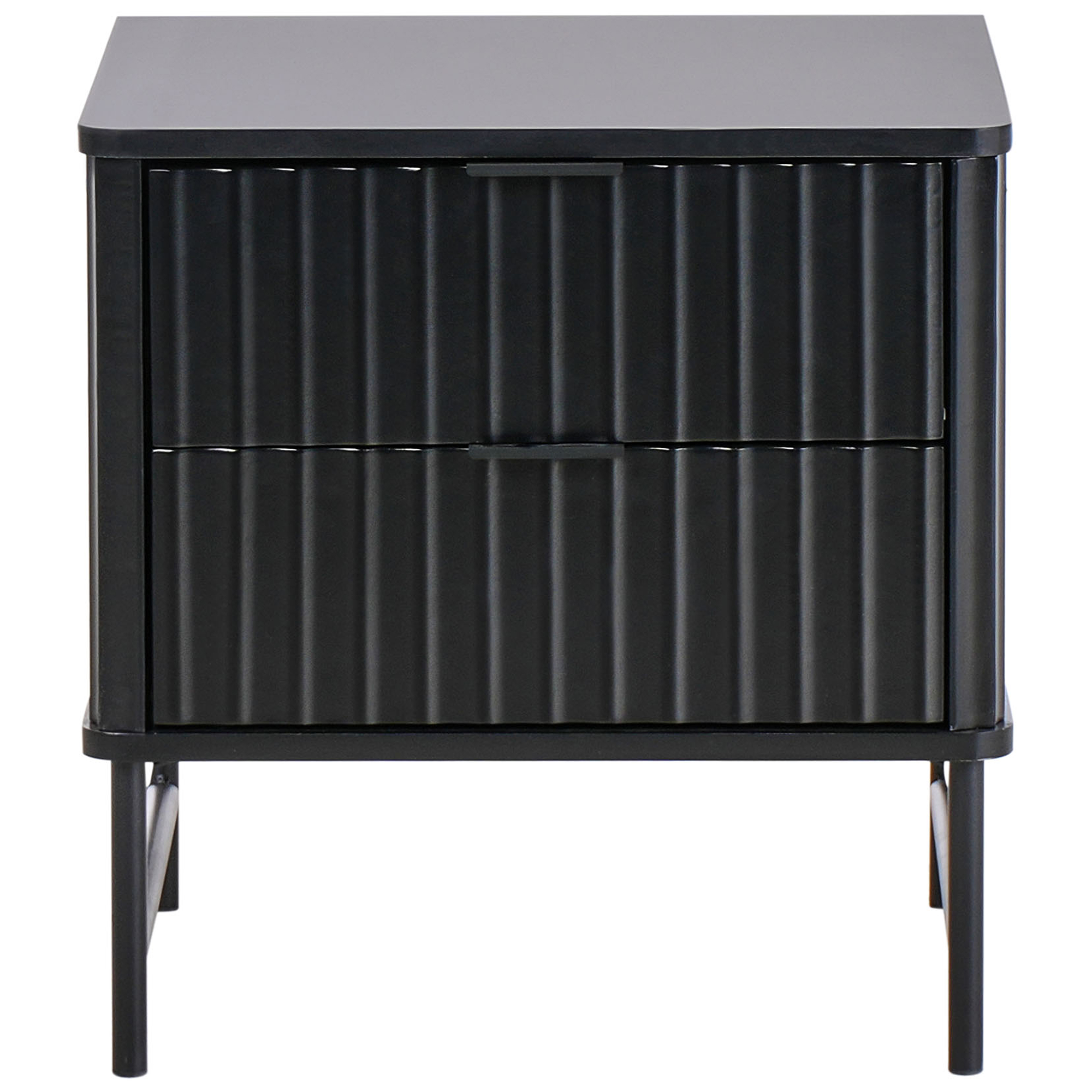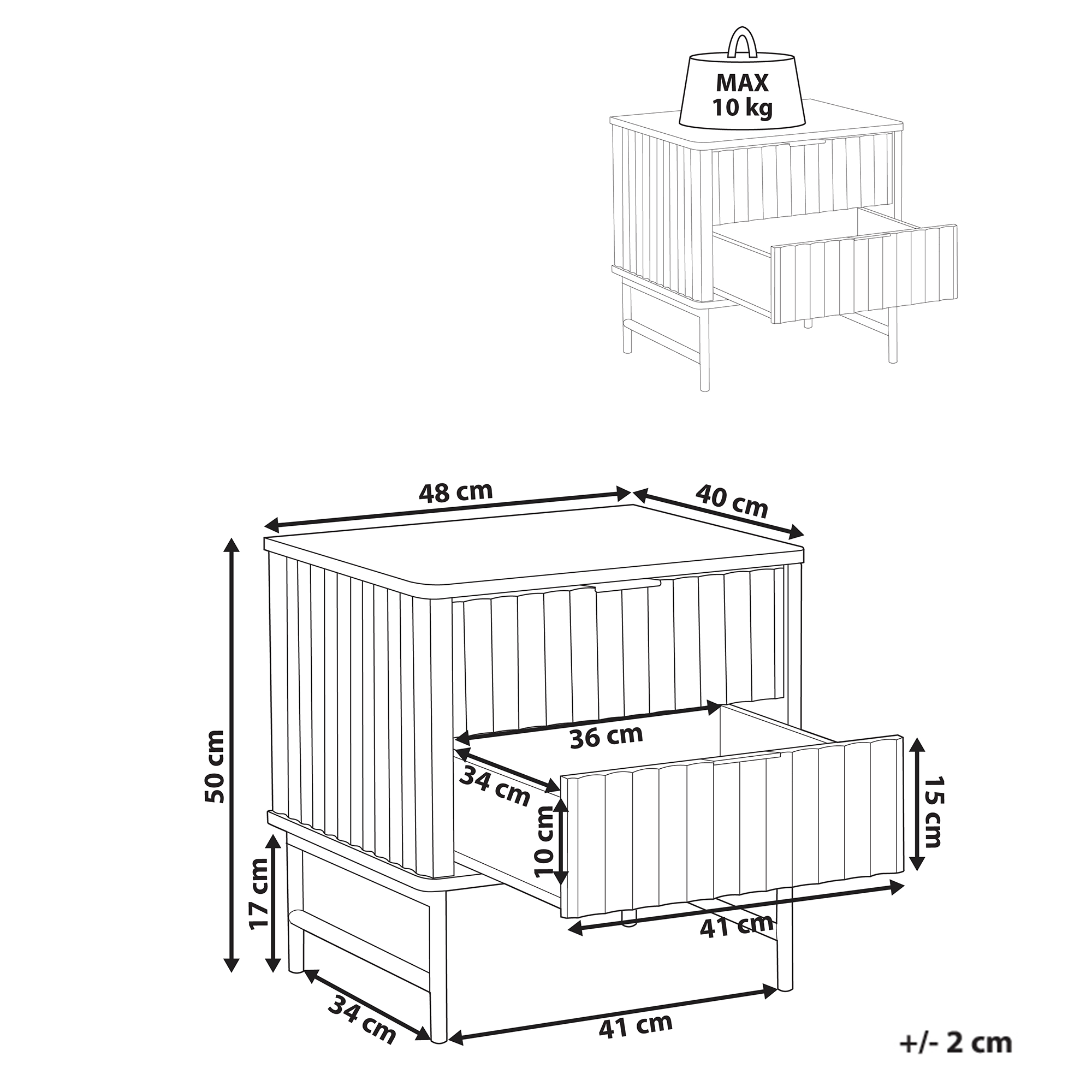 Moderni yöpöytä vetolaatikoilla. Tämä elegantti, uurrettu yöpöytä yhdistää nykyaikaisen muotoilun ja käytännöllisyyden. Siinä on kaksi tilavaa laatikkoa, jotka auttavat pitämään kaikki välttämättömät tavarat sängyn lähettyvillä. Yöpöytä on valmistettu kestävästä ja helppohoitoisesta MDF-levystä, minkä ansiosta se sopii erinomaisesti jokapäiväiseen käyttöön vähäisellä ylläpidolla. Tukevat jalat ja tyylikkäät kahvat raudasta takaavat vakauden ja lisäävät makuuhuoneeseen modernia, industriaalista ilmettä. Se on suunniteltu kestämään vuosia myös ilman päivittäistä puhdistusta.