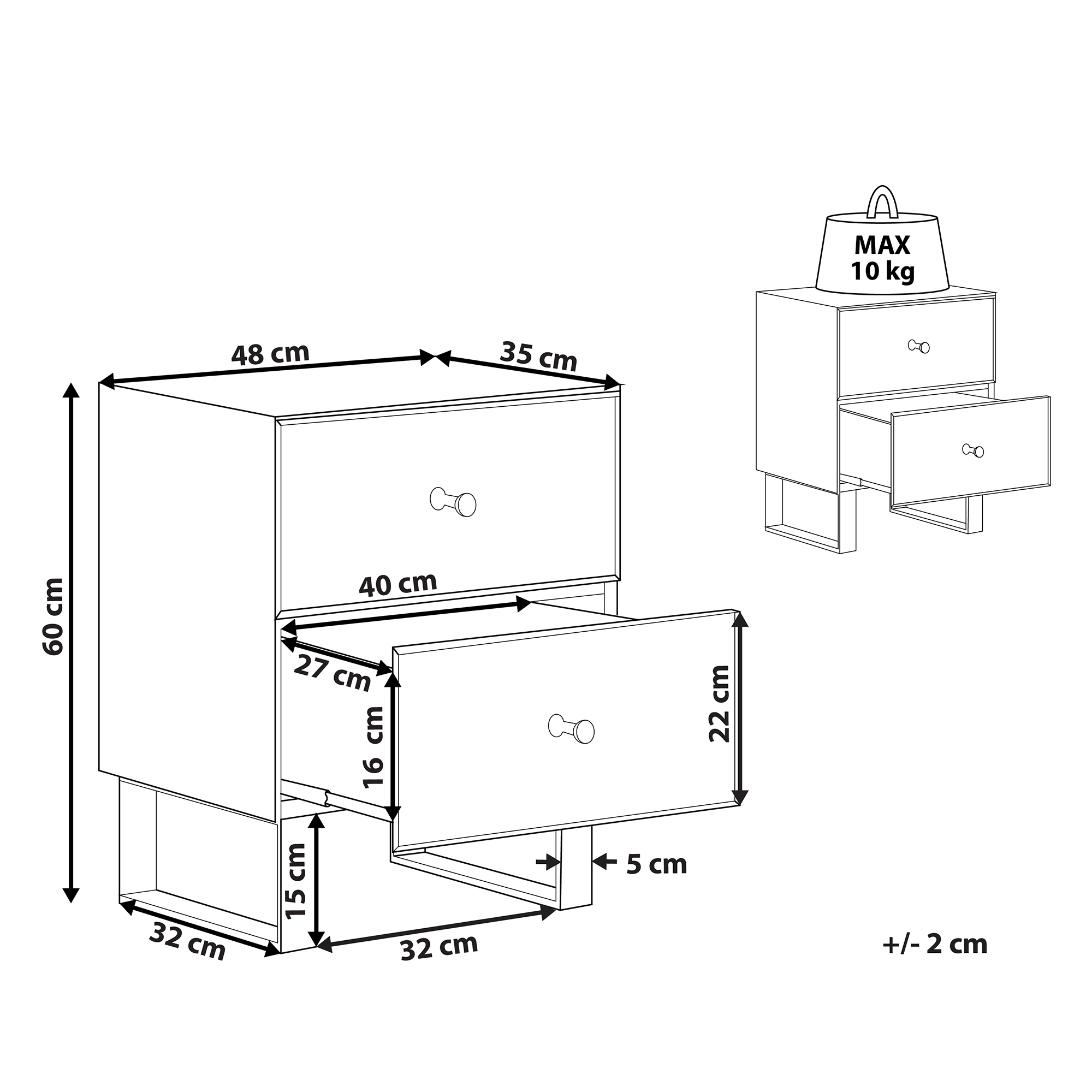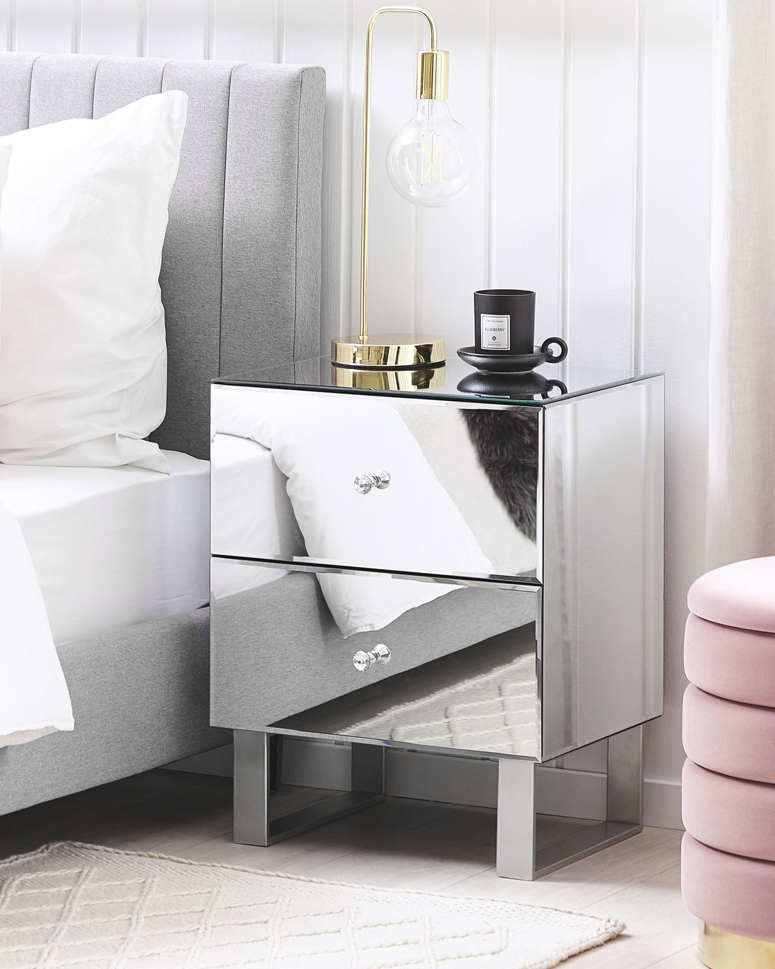 Yöpöytä 2 laatikolla NESLE lasi Peilattu hopea