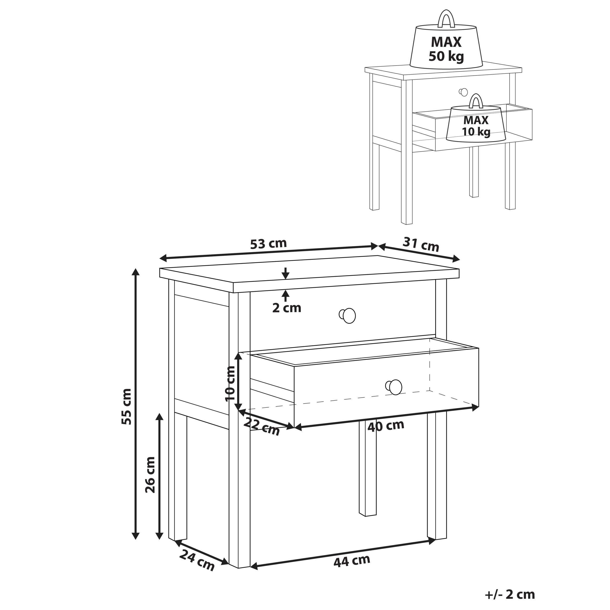 Rustiikkinen sivupöytä kahdella laatikolla. Tämä tyylikäs ja toiminnallinen lipasto tuo ripauksen rustiikkista viehätystä mihin tahansa makuuhuoneeseen. Se on valmistettu kestävästä mutta kevyestä sassafraspuusta, joka kestää lahoamista ja hyönteisiä. Puun näkyvät luonteenomaiset solmut ja luonnolliset vaaleat syykuviot antavat sille ainutlaatuisen ilmeen, joka sulautuu monenlaisiin sisustuksiin. Kaksi tilavaa laatikkoa tarjoavat runsaasti säilytystilaa välttämättömille tavaroille, ja taso sopii erinomaisesti valaisimen tai pikkukoristeiden esillepanoon.