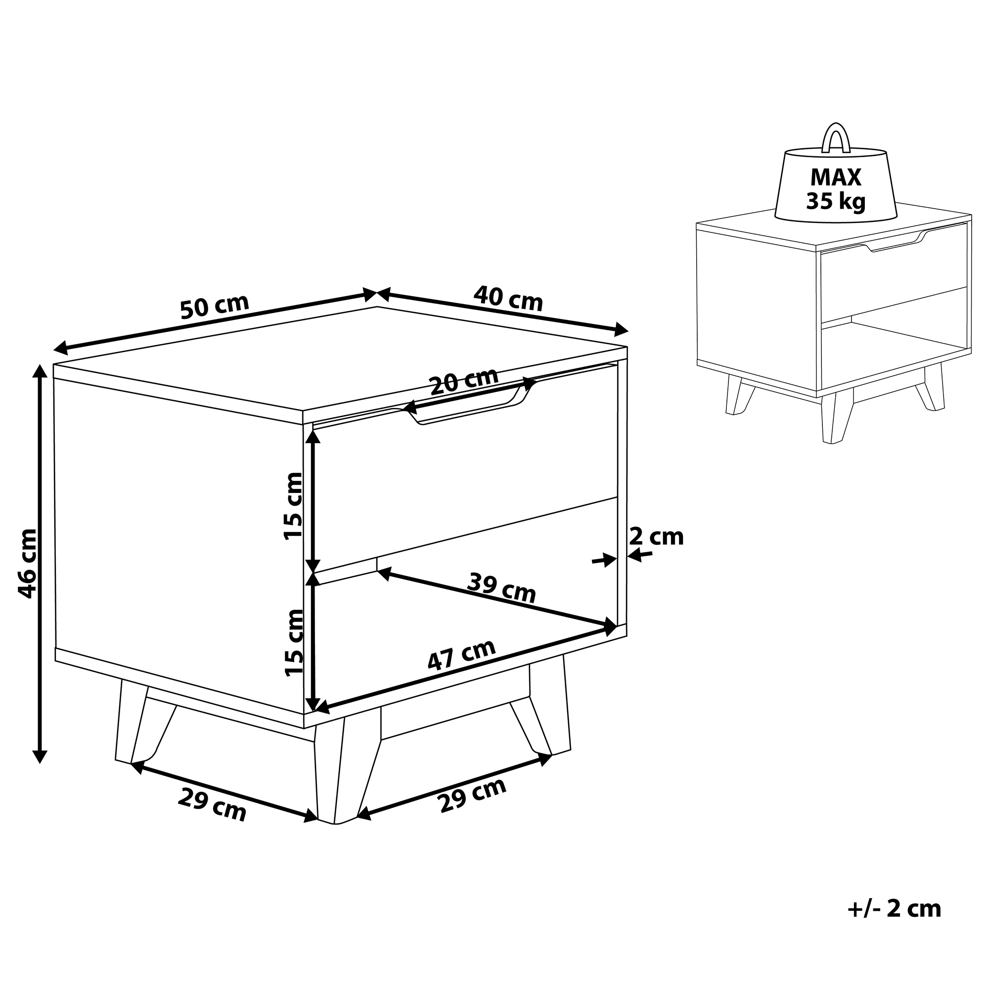 Käytännöllinen skandinaavinen sivupöytä. Moderni muotoilu, skandinaavinen minimalistisuus ja neutraalit värit. Pieni yöpöytä tarjoaa runsaasti säilytystilaa, niin että kaikki tarpeellinen pystyy käden ulottuvilla. Tämä kompakti yöpöytä sopii täydellisesti moderniin sisustukseen, täydentäen harmonista tunnelmaa makuuhuoneessa.