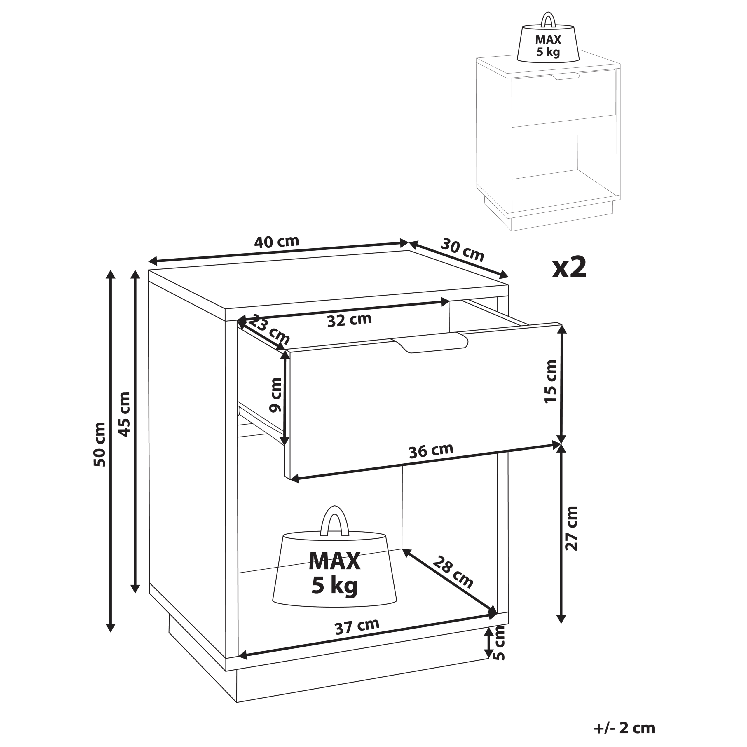 Hintaan sisältyy: 1 x Yöpöytä