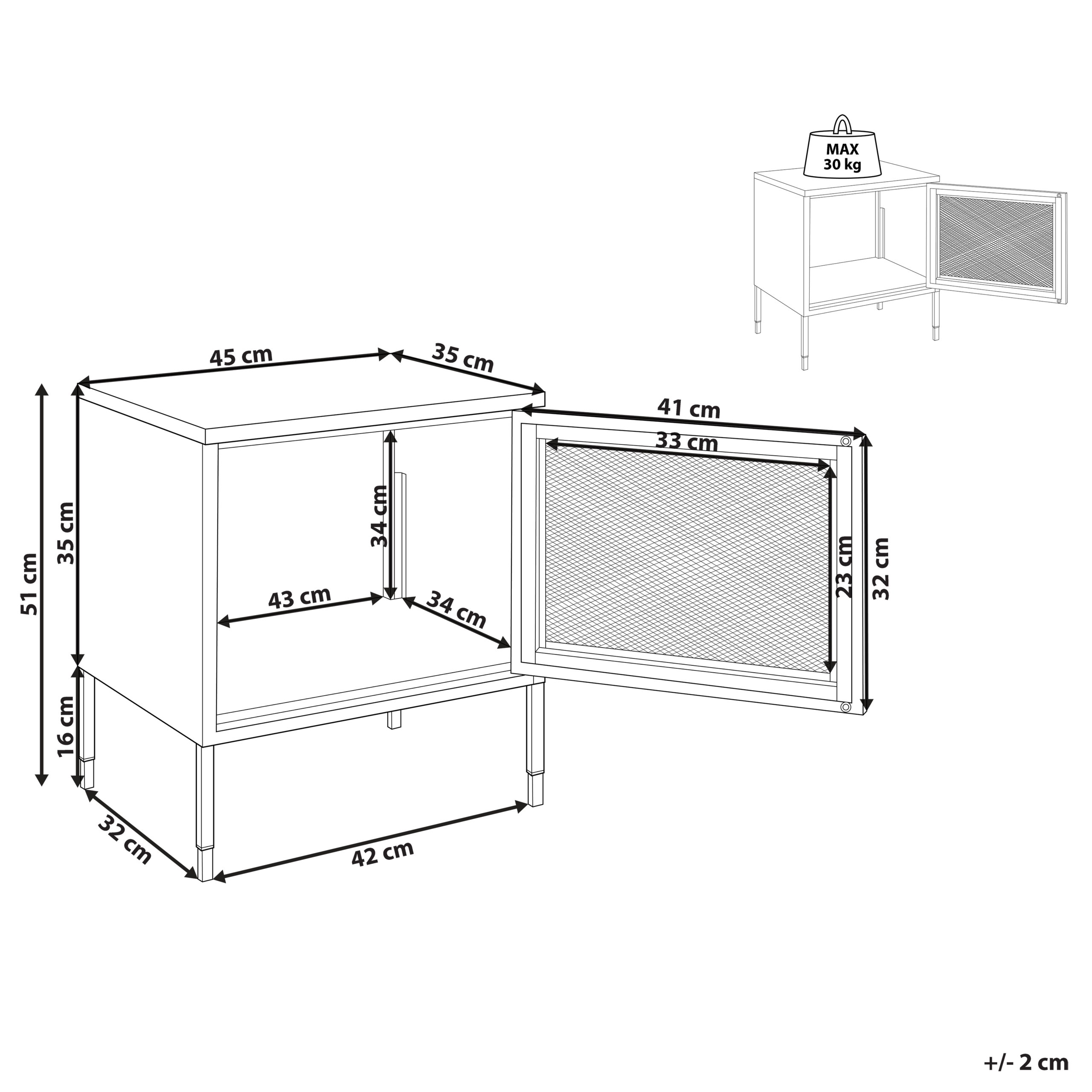 Industriaalinen sivupöytä verkko-ovella. Tämä tyylikäs, klassisen värinen yöpöytä sulautuu erinomaisesti osaksi industriaalisia ja moderneja sisustuksia. Jauhemaalatusta teräksestä valmistettu sivupöytä on varustettu verkko-ovella, joka antaa sille hienostuneen ilmeen. Sen kaappi tarjoaa lisää säilytystilaa, kun taas pöytälevy luo paikan valaisimelle tai muille tarpeellisille esineille.