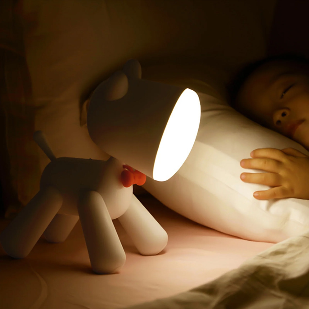 Tämä yöpöytälamppu on täydellinen tapa sisustaa minkä tahansa lapsen makuuhuone. Se on iskunkestävä ja pudotuksenkestävä, joten se kestää varmasti lasten kömpelyyttä. Valaiseva koiranpää levittää lapsille rauhoittavaa, rentouttavaa valoa. Johdottoman paristonsa ansiosta tämä lastenvalaisin kulkee lasten mukana kaikkialle, jotta he eivät enää koskaan pelkää pimeää.